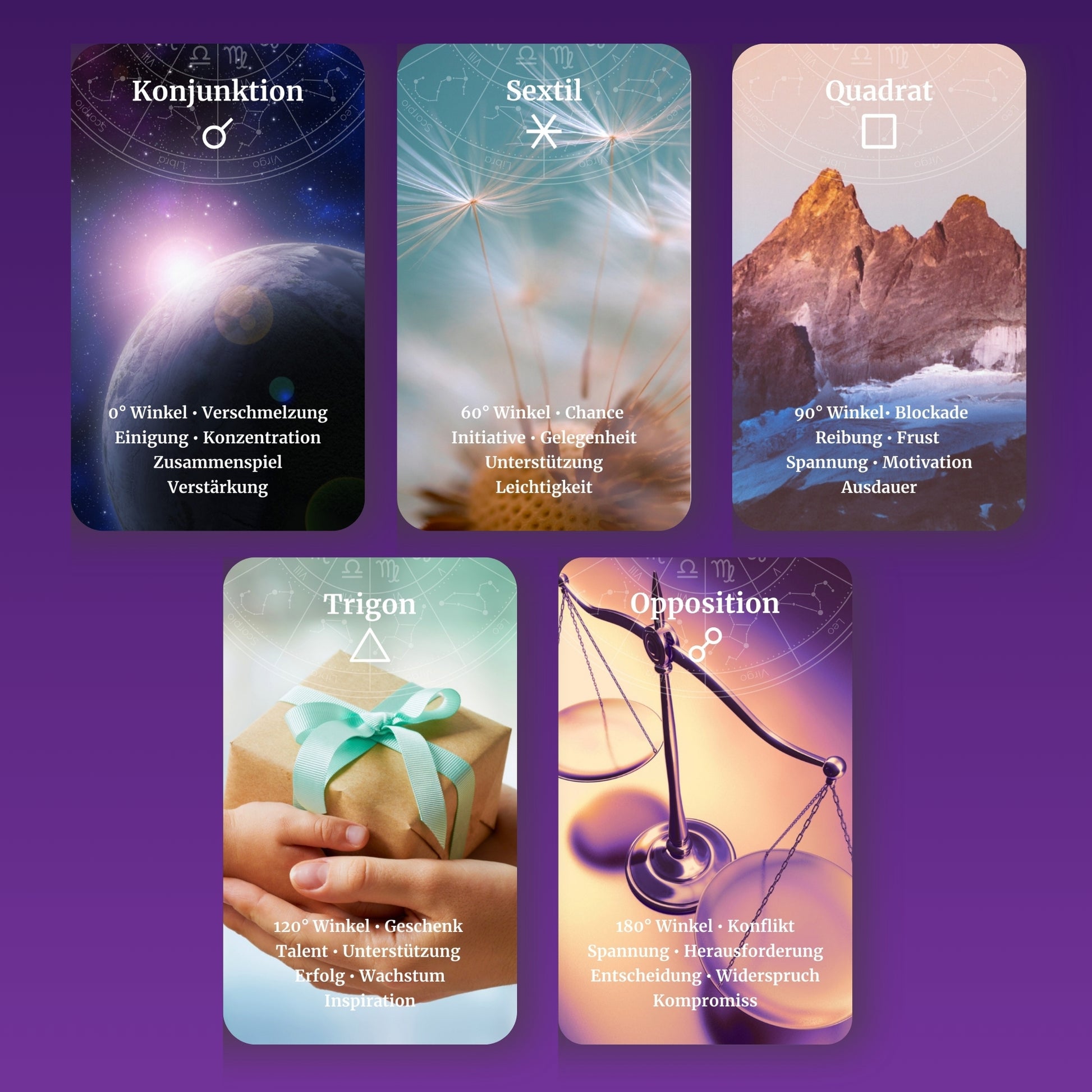 Als Anfänger erhältst du ein tiefes Grundverständnis der Bedeutung aller Planeten, Tierkreiszeichen, Häuser und Aspekte. Als Fortgeschrittener oder Profi kannst du die Karten für jede Art von astrologische Methode einsetzen.